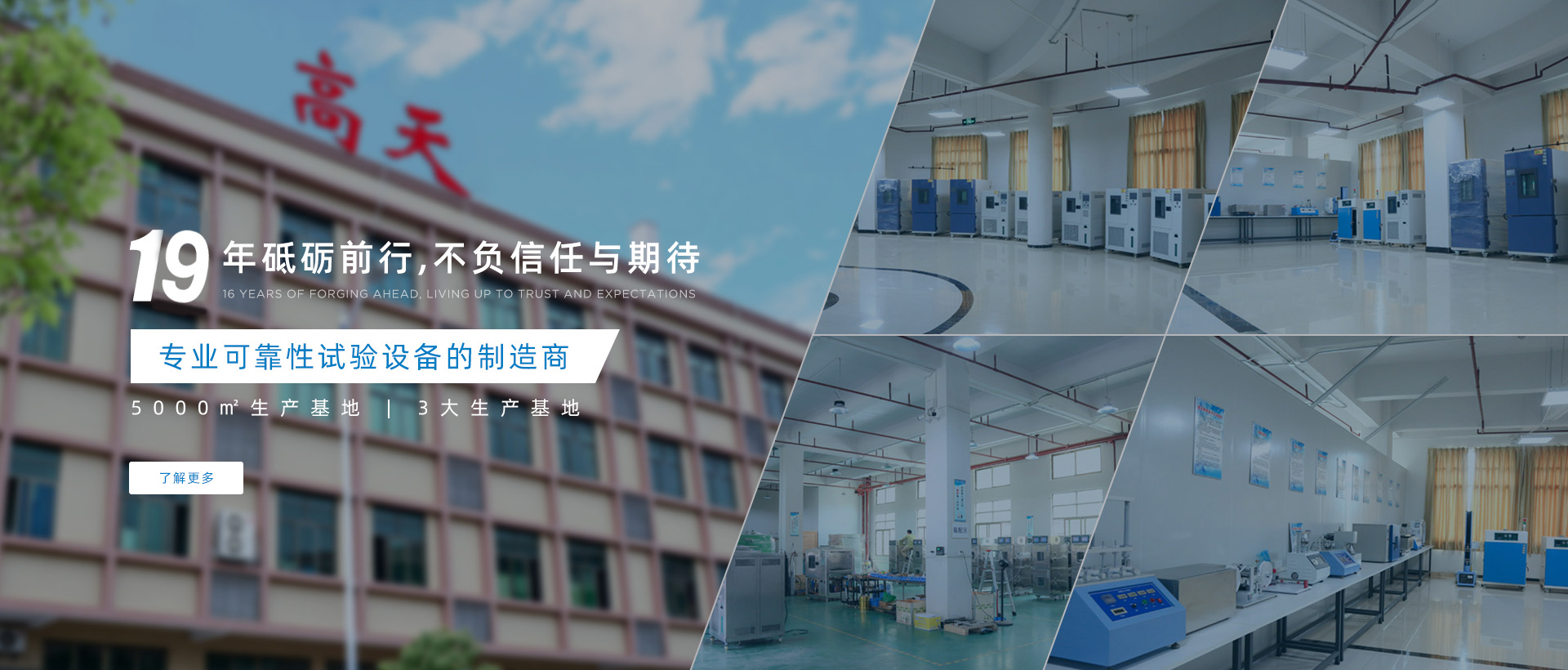 東莞市高天試驗設(shè)備有限公司是一家可靠性試驗設(shè)備的制造商,我們專注于可靠性試驗已有19余年,在此期間,我們竭盡所能,努力為客戶提供完善的實驗室規(guī)劃方案,匹配質(zhì)優(yōu)價廉的試驗設(shè)備。高天擁有完整的研發(fā)團隊,其中有很多人都躋身試驗設(shè)備行業(yè)多年,能為顧客提供完善的技術(shù)方案,以幫助廣大客戶在確保其產(chǎn)品品質(zhì)的前提下,有效降低經(jīng)營成本,提升經(jīng)營競爭優(yōu)勢。高天生產(chǎn)的設(shè)備種類眾多,同時擁有實用新型專利證書,銷售范圍覆蓋全國。公司自成立以來堅決以精美的外觀設(shè)計,認(rèn)真務(wù)實的工作精神,良好周到的后續(xù)服務(wù),贏得了客戶良好的口碑。我們將一如既往,堅持以“誠信經(jīng)營”為...